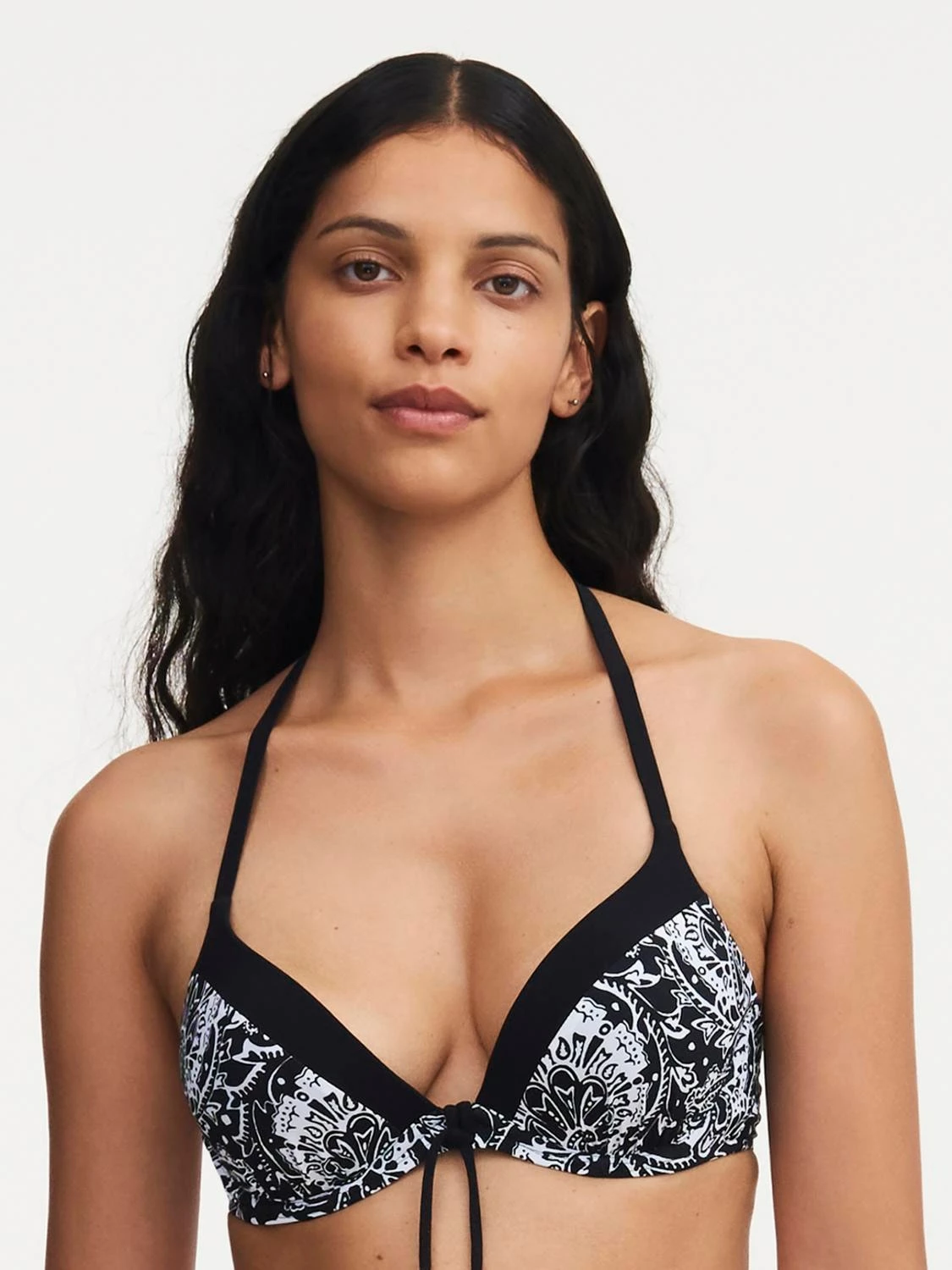 Sehr tief ausgeschnittene Bikini Push-up Schale von Chantelle mit herausnehmbaren Pads und verstellbaren Multiway-Trägern für ein verführerisches Design.