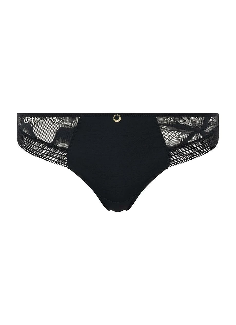 Modischer Tanga von Chantelle aus weichem, blickdichtem Material mit elastischen, grafischen Abschlüssen an Taille und Beinen, die ein Einschneiden verhindern.
