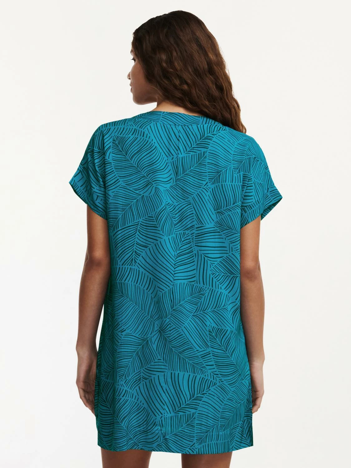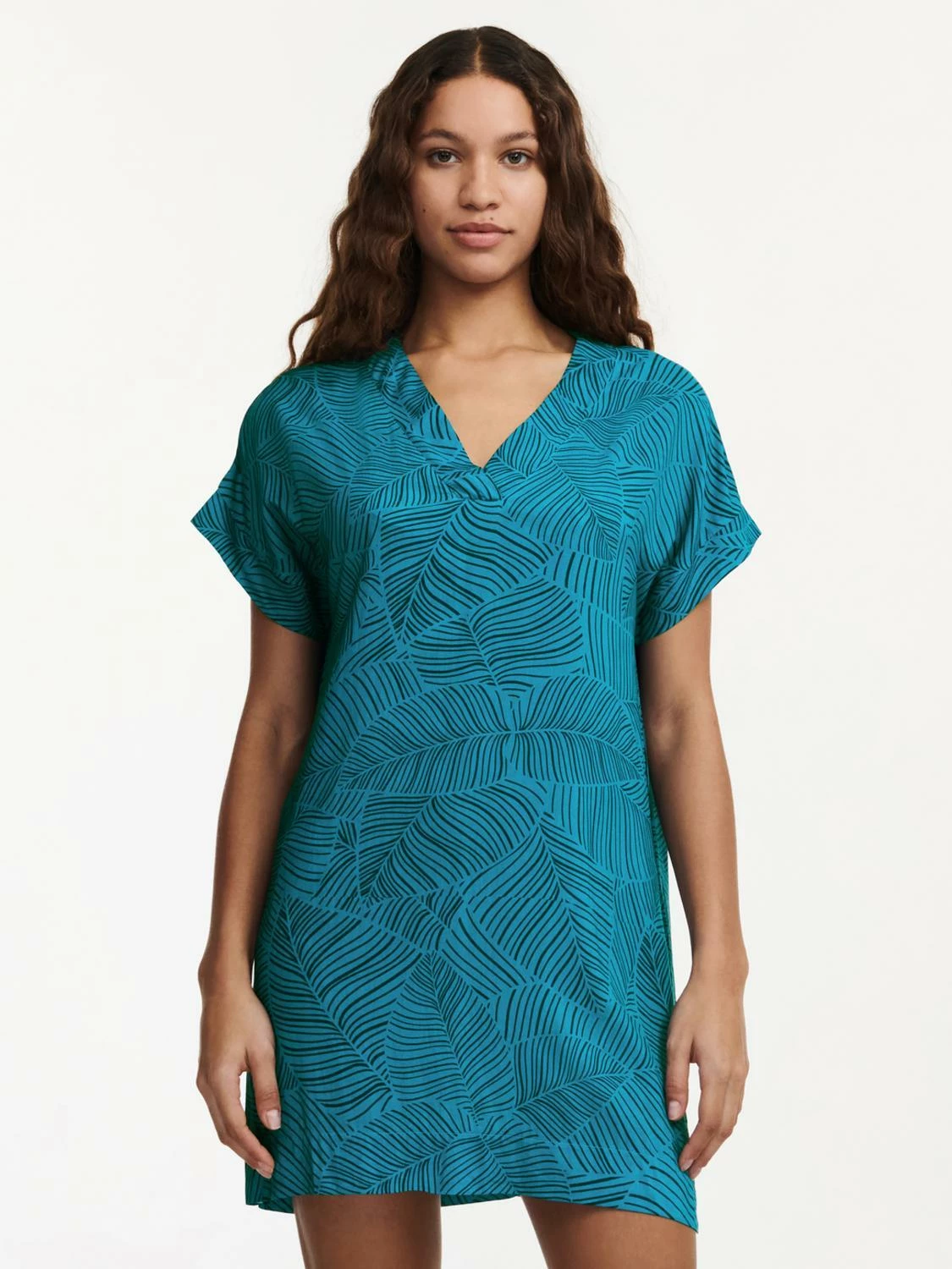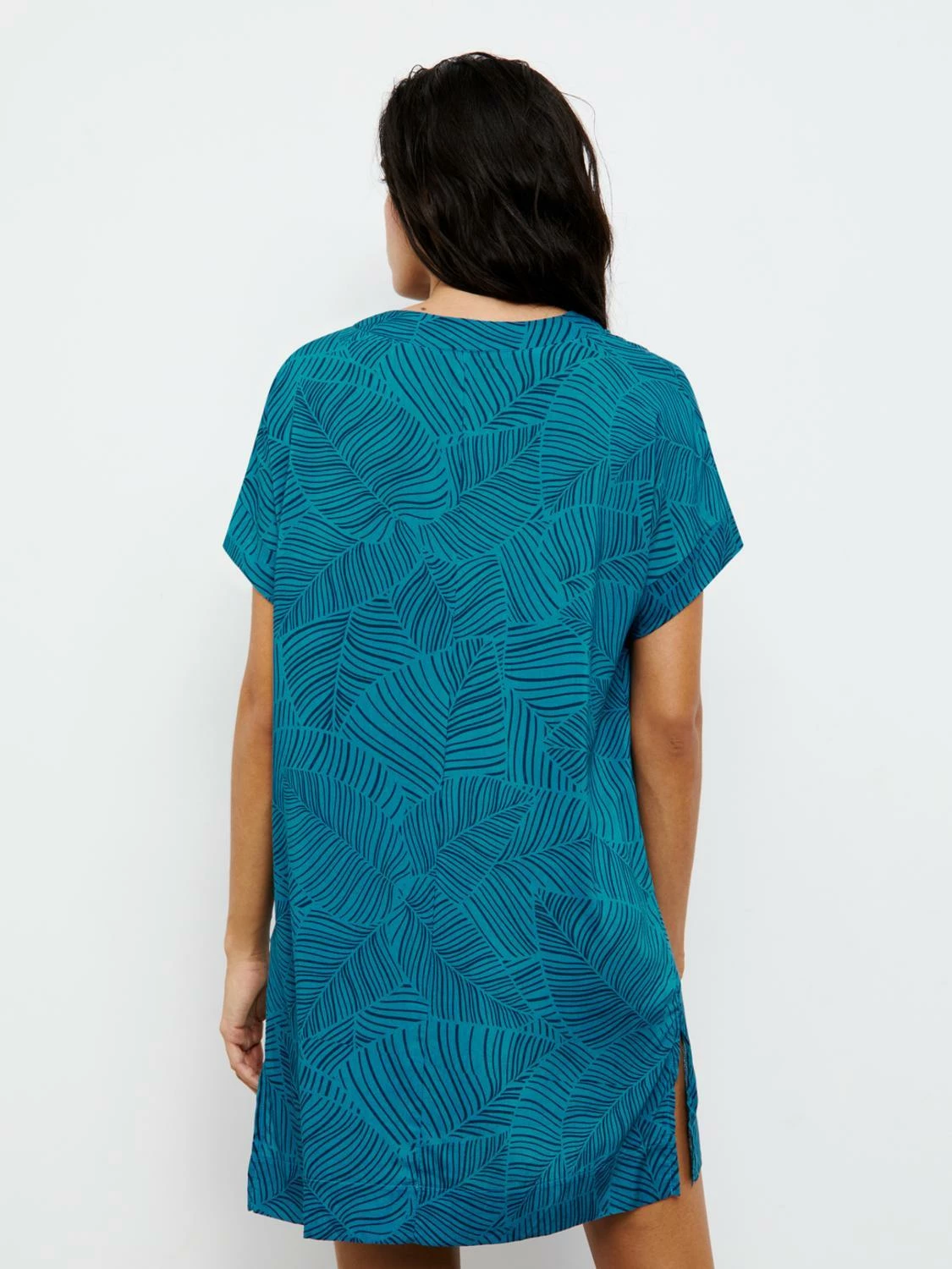 Kleid mit kurzen Ärmeln von Femilet mit einem V-Ausschnitt. Perfekt geeignet für einen Tag am Strand.