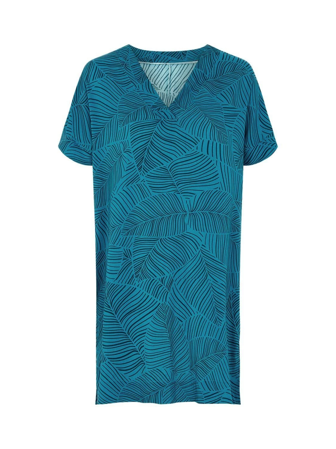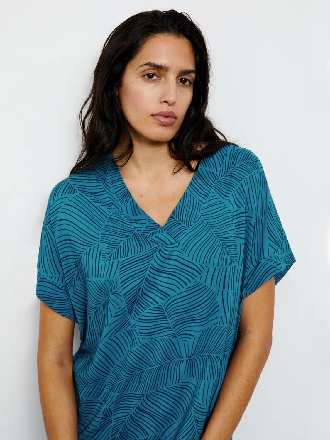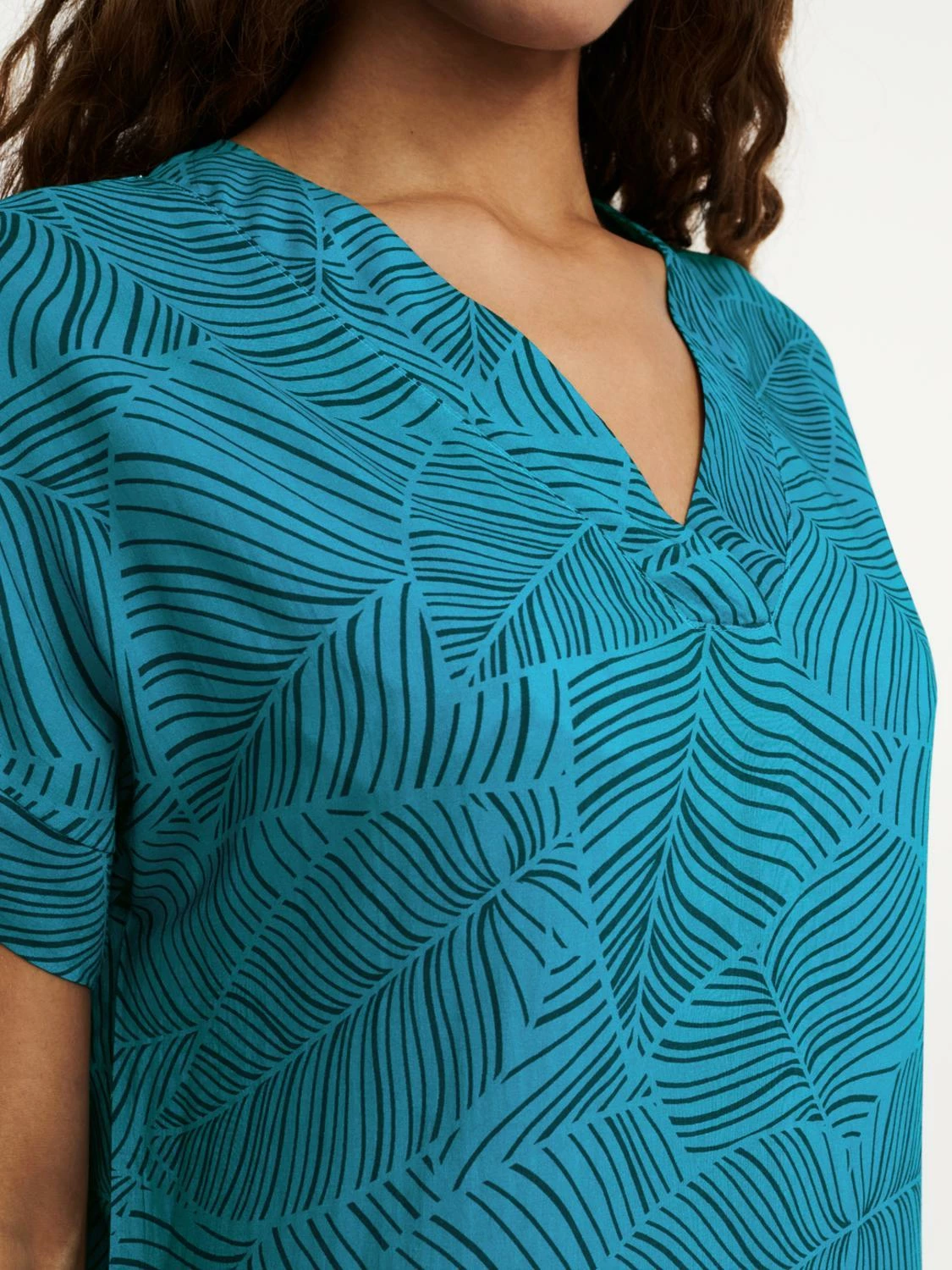 Kleid mit kurzen Ärmeln von Femilet mit einem V-Ausschnitt. Perfekt geeignet für einen Tag am Strand.